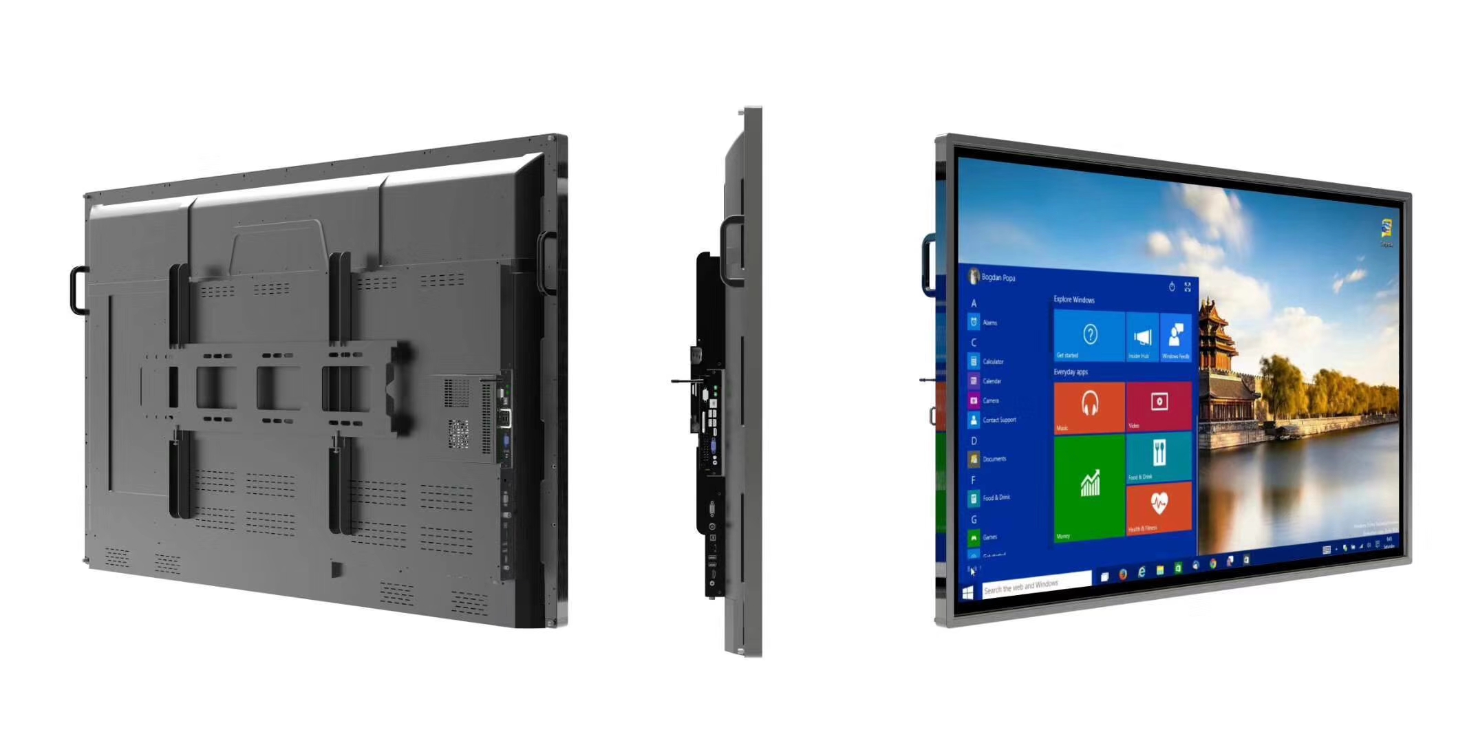 采用铝合金型材面框,四角圆滑,窄边框,下方大气稳重设计